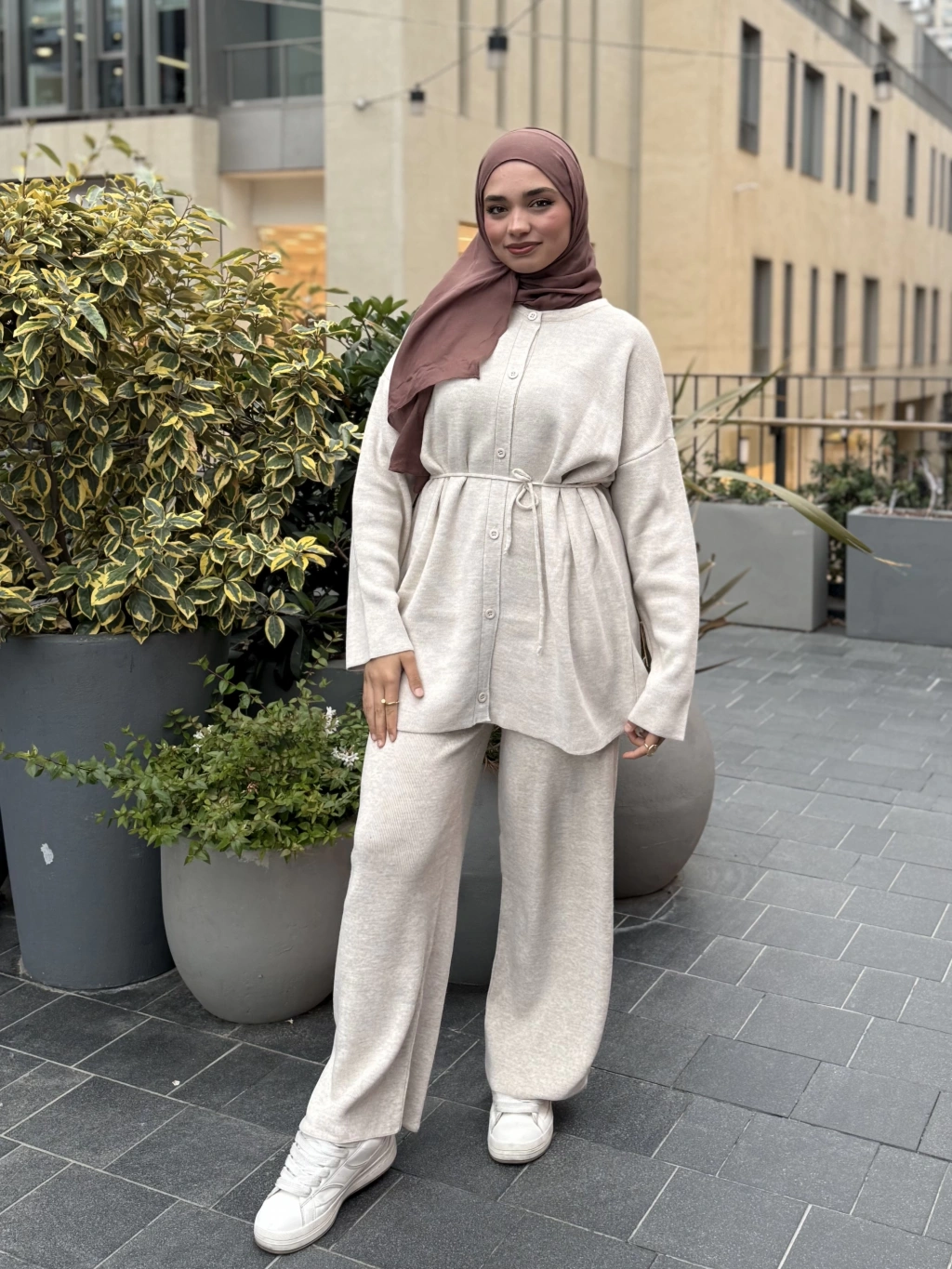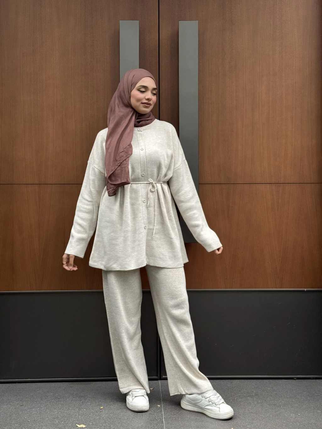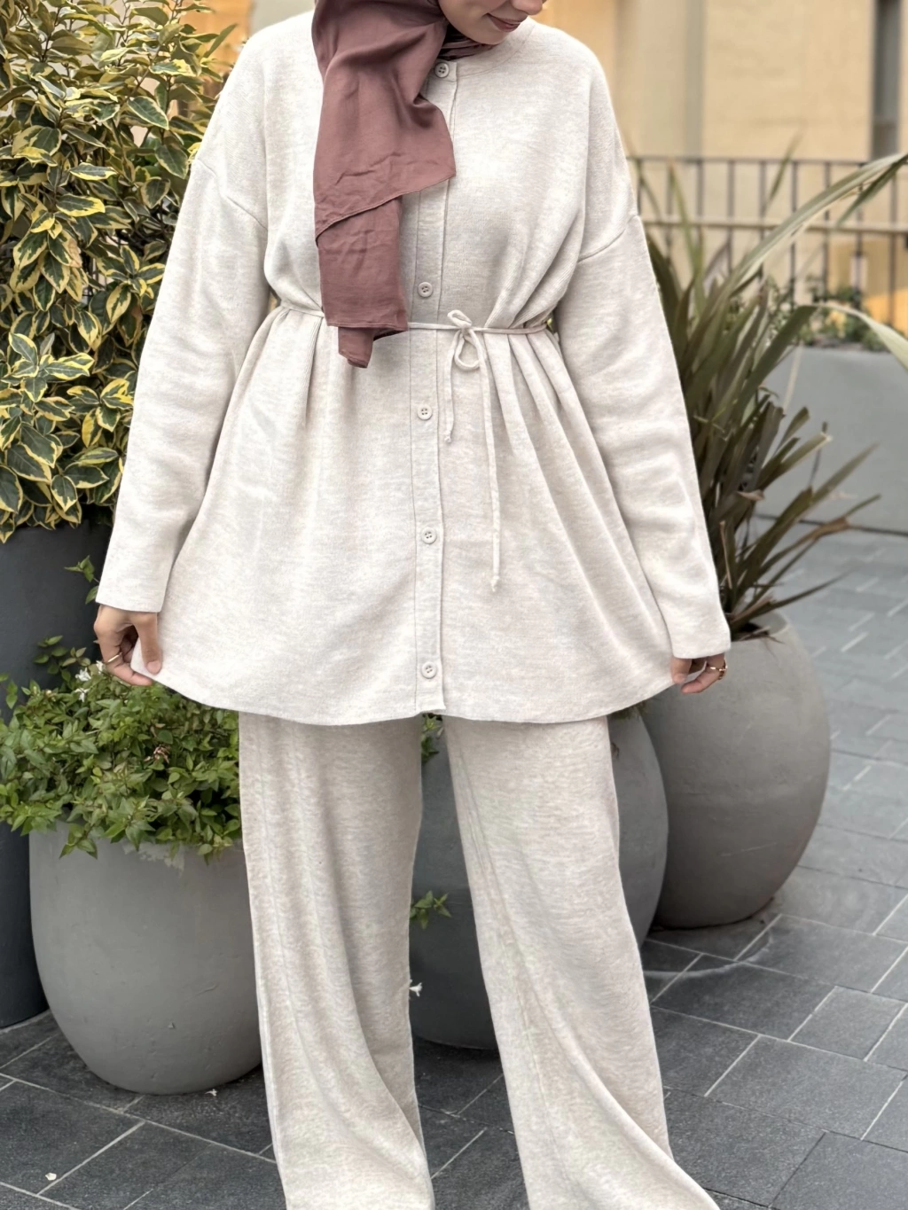 Düğmeli Kışlık Tesettür Triko Takım