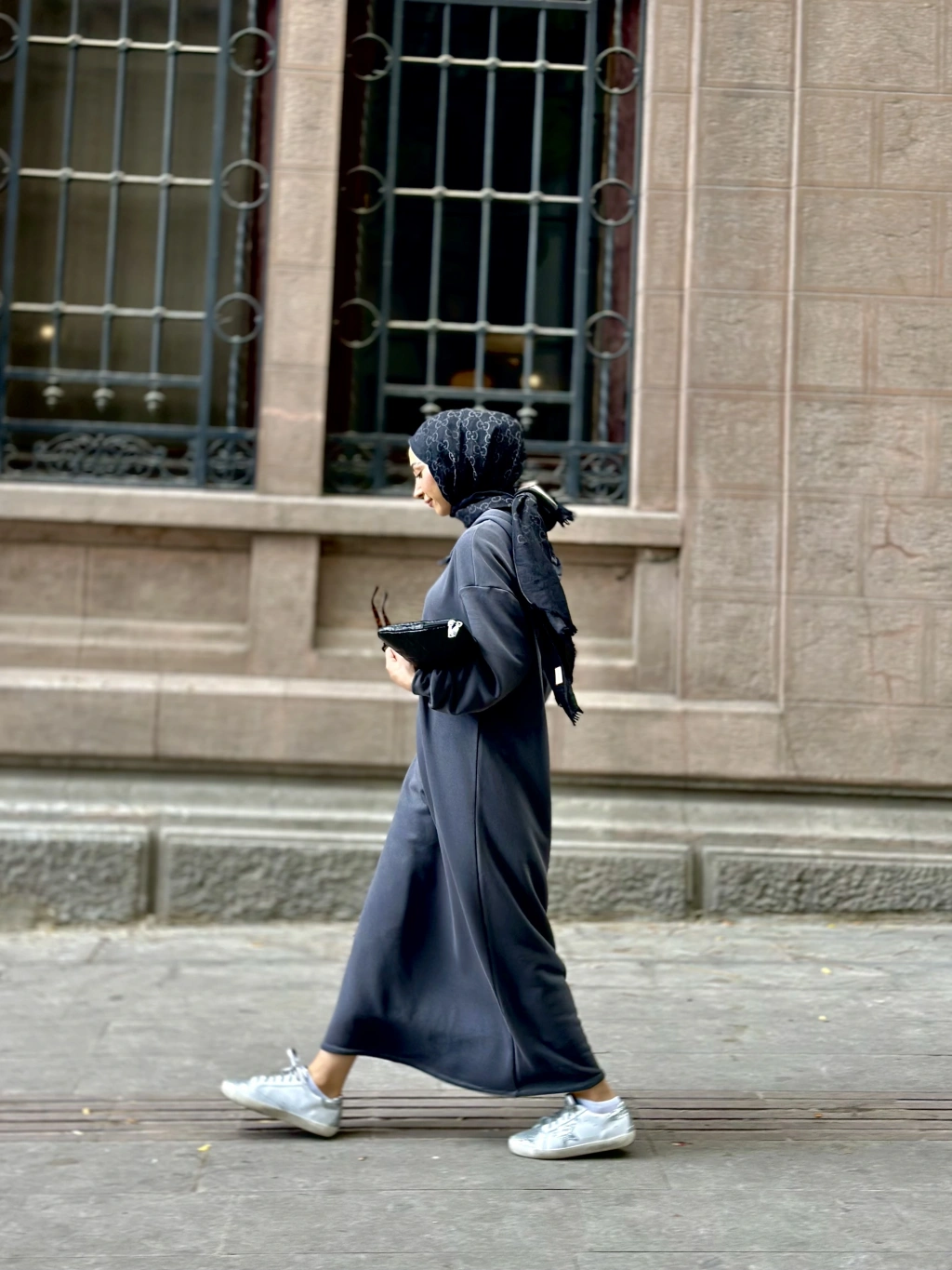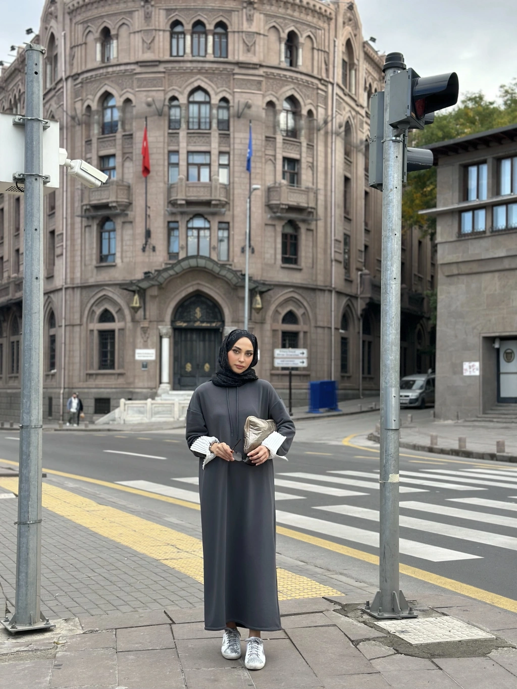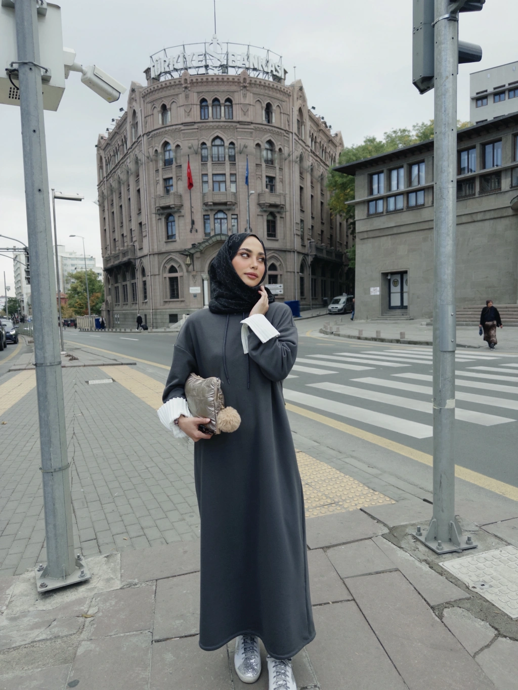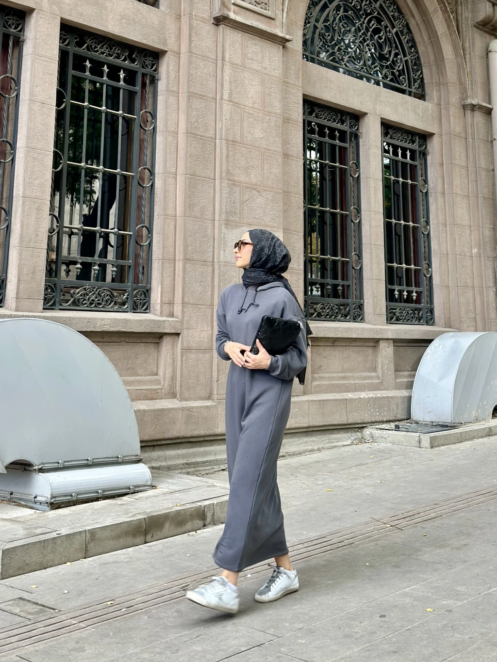 Kapüşonlu Kışlık 3 İplik Tesettür Elbise
